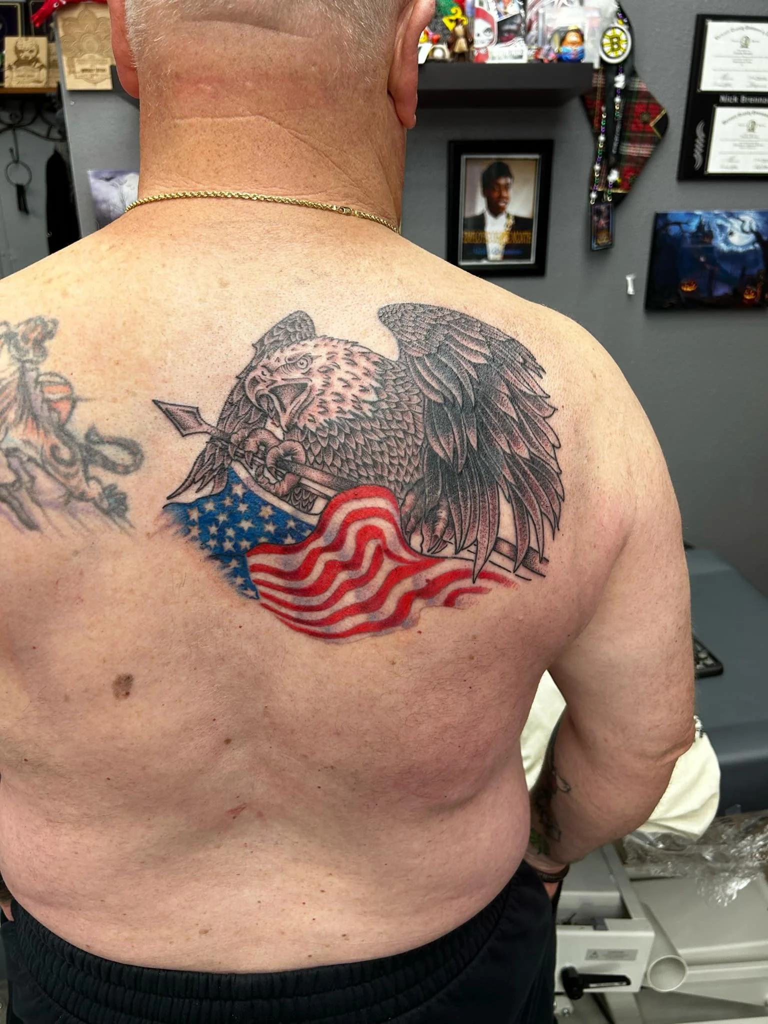 AND IN THIS CORNER!!! Representing the COWBOY STATE since day one; With the upmost crooked spine from tatting the most 3-piece crispy lines. The man who’s got the flavor savers for the haters. And if you’ve experienced his combination of Fergi and Jesus presence at the local karaoke nights, he’s got the moves that really move em. May I present to you, Nick Brennan or some of you may know him as Nikki Nice Hands, and let me tell you the work stays true to the name. As your hometown kid, Nick is very well known for having linework so stunning that it would deliver a Stone Cold Stunner. When it comes to specialities; he brings the heat that makes even Gordon Ramsey stay out of the kitchen. He loves tattooing anything that consists of strong linework, nice peppery whip shading and if color is the choice for you; he puts the PAP in papi 😎 hellllll yeaaahhh.
